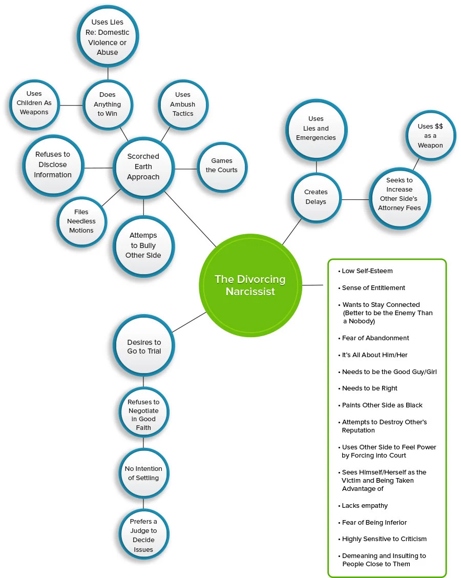 Well known author, Bill Eddy, LCSW, JD, who has written extensively about the Narcissistic Personality Disorder and the Borderline Personality Disorder in the context of divorce, wrote in his book, Splitting: